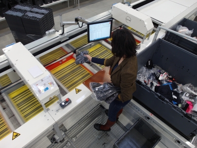 Der Crossbelt Sorter ist ein Sortiersystem welches für die Sortierung einer Vielzahl von Produkten entwickelt wurde, von Kleidung, Multimedia-, Pharma- und Postpaketen über frische Lebensmittel (sogar Eierkartons) bis hin zu leicht zerbrechlichen oder in Flaschen abgefüllten Produkten.